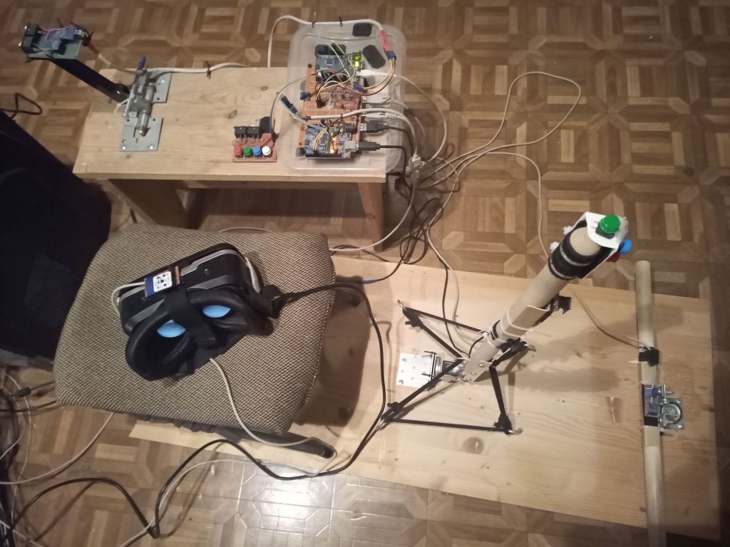 Симулятор написан на Delphi7+GLScene, обычные 3Д очки с андроид-телефоном подключены через Wired XDisplay (безпроводные соединения совсем безблагодатны), наклон очков определяется IMU-модулем Troyka с помощью фильтра Махони, как самого человекопонятного.